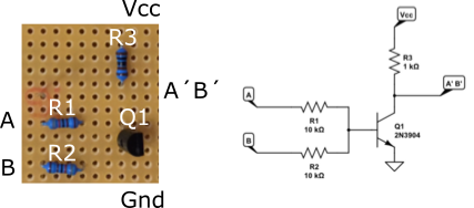 But the cleanliness has a price: 23 transistors for one adder is a lot. I need four-adders for four bits, so that's 92 transistors. I dug a bit further and found out that the boolean logic of the adder can be simplified to 9 NOR-gates. And most conveniently, a NOR-gate can be built out of one transistors: so we are down from 23 to 9 transistors per adder.